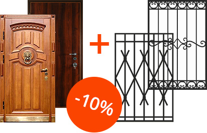При заказе металлической входной двери с решётками на окна, Вы получаете скидку 10%